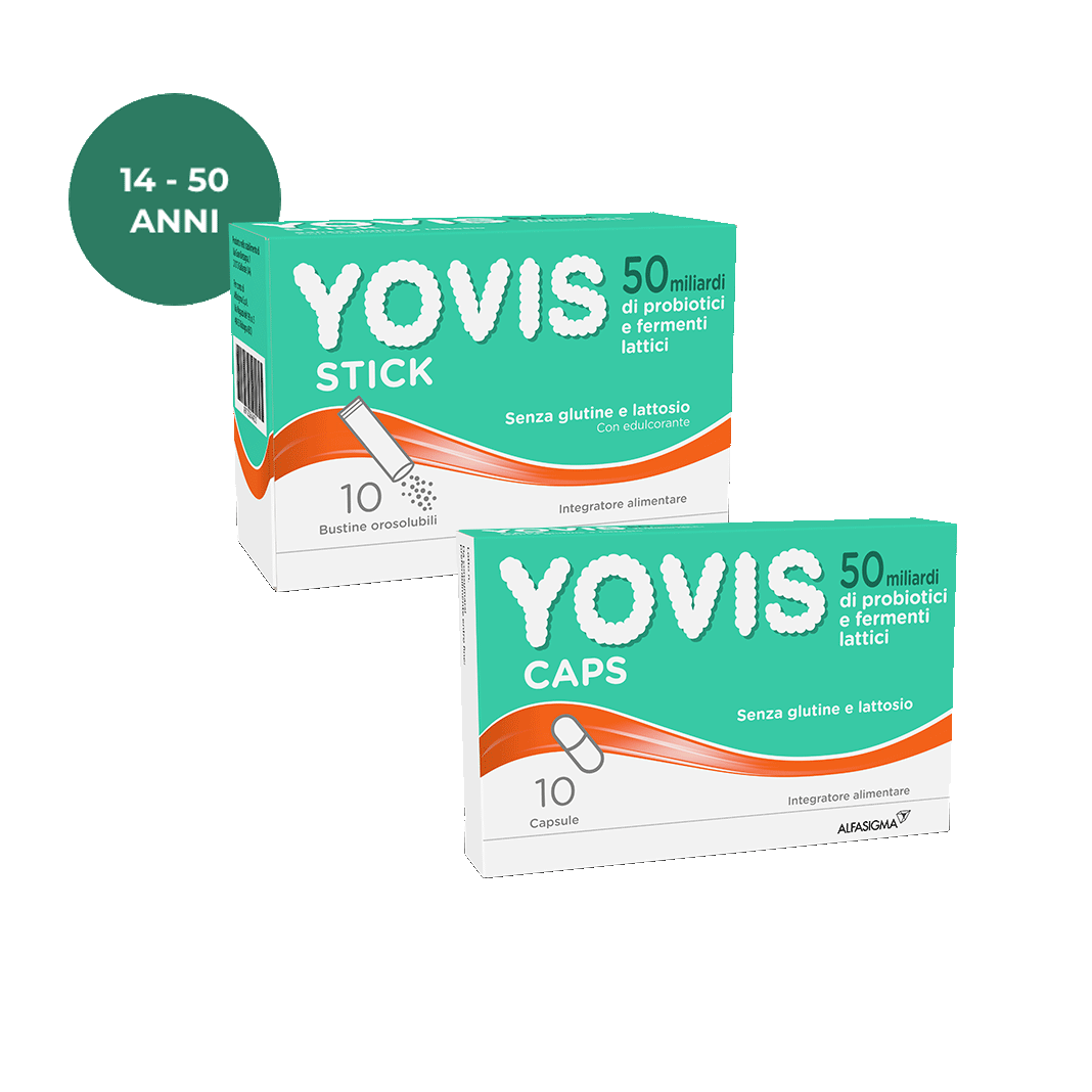 Con 4 ceppi diversi e 50 miliardi di probiotici e fermenti lattici vivi per rispettare la tua unicità, Yovis Caps e Yovis Stick favoriscono l’equilibrio della tua flora intestinale con la loro attività probiotica.
